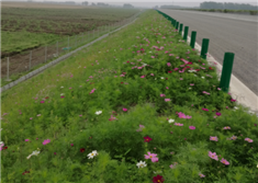植物纖維毯屬節(jié)能環(huán)保草毯,使用簡(jiǎn)單如鋪地毯覆蓋坡面即可,適用于強(qiáng)弱分化巖質(zhì)、土質(zhì)和沙土等各類邊坡綠化,能為植物生長(zhǎng)提供必須條件,固沙、護(hù)坡和防止水土流失作用明顯,植被恢復(fù)也是有效綠化手段,防護(hù)方式更貼近自然。本項(xiàng)目部分低矮邊坡開(kāi)發(fā)應(yīng)用植物纖維毯新技術(shù),契合綠色公路設(shè)計(jì)理念。